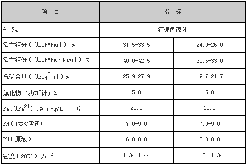| 活性組分(以DTPMPA計)/% | 31.5~33.5 | 24.0~26.0 |